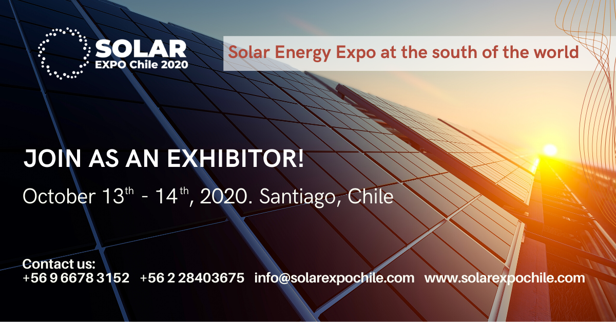 SOLAREXPO is the latinamerican event to make business related to the solar energy sector. We strongly believe in the growth of the need of clean energies and solar energy is the one where the focus will be in the presents days. Don't miss the opportunity. Join us, e-mail: info@solarexpochile.com